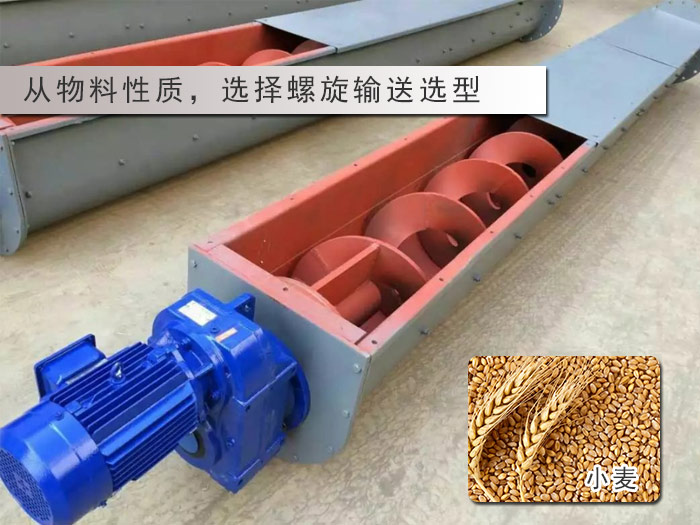 螺旋輸送機(jī)的不同就還在于螺旋輸送機(jī)的葉片的不同所以,要根據(jù)被輸送物料性質(zhì),確定螺旋輸送機(jī)的選型,如:輸送小麥、稻谷等散落性較好的物料時(shí)應(yīng)選用滿面式葉片;輸送油料類黏性大、易粘結(jié)的物料時(shí),為了防止堵塞,應(yīng)選用帶式葉片。