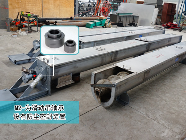 1,M1-為滾動(dòng)吊軸承,采用80000型密封軸承,軸蓋上另有封塵密封結(jié)構(gòu),常用在不易加油,不加油或?qū)ξ锪嫌形廴镜牡胤剑芊庑Ч茫踺S壽命長(zhǎng),輸送物料溫度小于等于80℃。