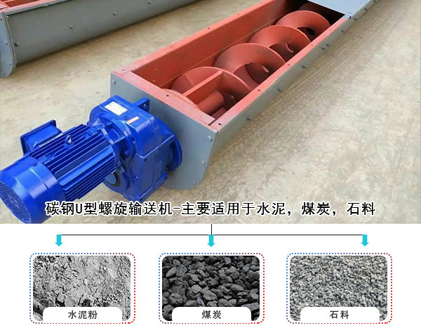 1,普通碳鋼U型螺旋輸送機(jī)-主要適用于水泥,煤炭,石料,等磨損較大,對(duì)物料沒(méi)有特殊要求的行業(yè)。