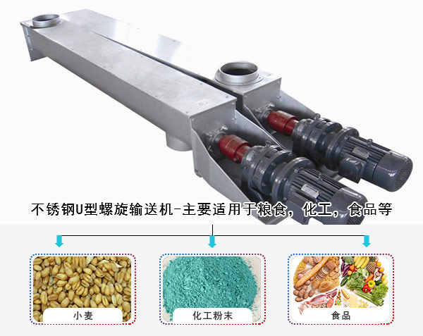 2,不銹鋼U行螺旋輸送機(jī)-主要適用于糧食,化工,食品等對(duì)輸送環(huán)境有要求的行業(yè),清潔度高,并且不會(huì)對(duì)物料產(chǎn)生污染,使用時(shí)間長(zhǎng),但是造價(jià)相對(duì)較高。