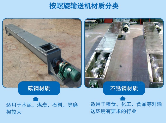 2、不銹鋼U型螺旋輸送機(jī)-主要適用于糧食、化工、食品等對輸送環(huán)境有要求的行業(yè),清潔度高,并且不會對物料產(chǎn)生污染,使用時(shí)間長,但是造價(jià)相對較高。