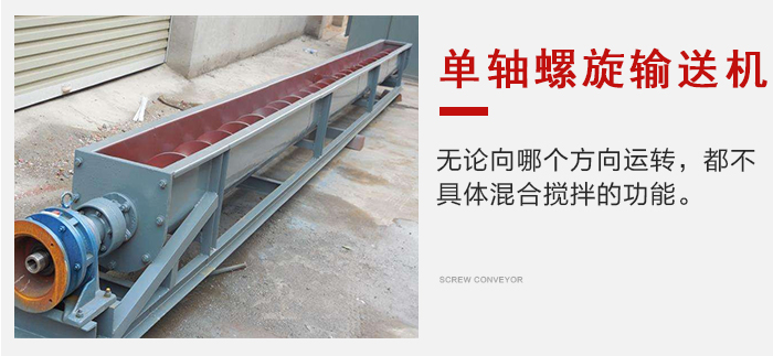 單軸螺旋輸送機無論向哪個方向運轉(zhuǎn),都不具體混合攪拌的功能,當(dāng)物料放入進(jìn)料口時,會自動將物料轉(zhuǎn)動到中間,混合到一起。