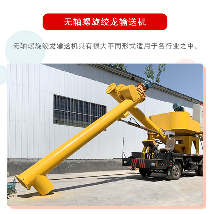 無軸螺旋輸送相對于有軸的螺旋輸送機(jī)其少了一個(gè)軸承,所以相比之下無軸螺旋絞龍輸送機(jī)的結(jié)構(gòu)更加簡單、料槽中無軸承,物料輸送流暢,維修簡便。