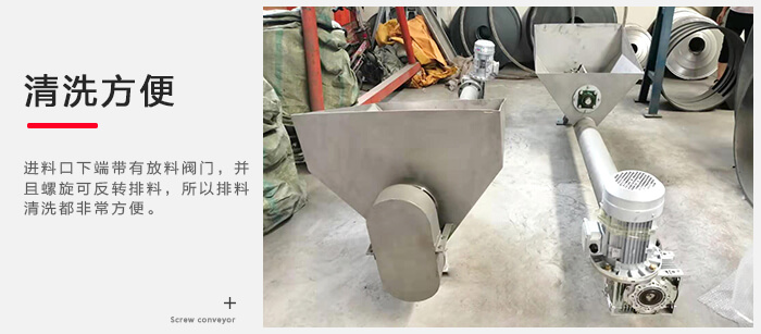 進(jìn)料口下端帶有放料閥門,并且螺旋可反轉(zhuǎn)排料,所以排料、清洗都非常方便。