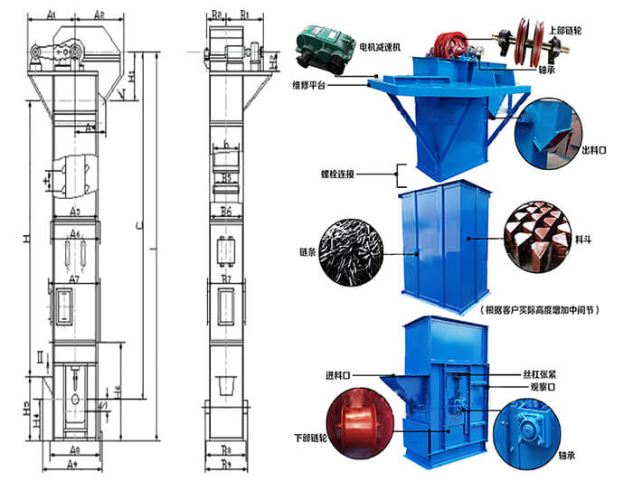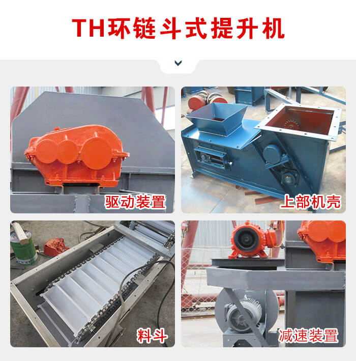 TH環(huán)鏈斗式提升機(jī)是一種常用的高效提升設(shè)備,提升產(chǎn)量大、效率高,主要由運行部件、牽引件(輸送鏈)、驅(qū)動裝置、上部裝置、中部機(jī)殼、下部裝置、加料口(入料口)和卸料口(出料口)組成。可適用與淀粉的高速提升輸送。