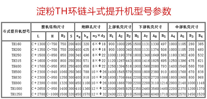 粉TH環(huán)鏈斗式提升機(jī)型號有TH160、TH250 、 TH315、TH400 、TH500等。同時大漢機(jī)械支持產(chǎn)品特殊定做,根據(jù)您的要求為您定制出合適的設(shè)備!