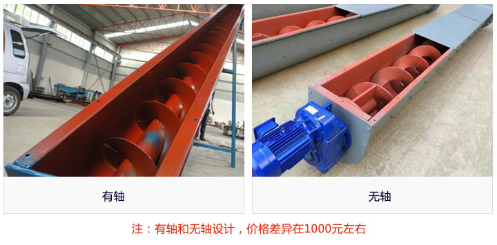 絞龍螺旋輸送機(jī)按物料屬性不同所使用的螺旋葉片不同可分有軸和無軸兩種,采用的設(shè)計(jì)理念也就不同,同種情況下,無軸的要比有軸的生產(chǎn)難度高,因此價格也會存在1000元左右的偏差。