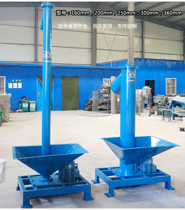 大漢機械的垂直立式螺旋輸送機型號有160,200,250,300,360等5種規(guī)格,且備貨齊全,支持當(dāng)天發(fā)貨;此外,特定型號可根據(jù)用戶描述需求,設(shè)計圖紙,進行生產(chǎn),如移動式垂直立式螺旋輸送機,專用于不固定場所的物料輸送。