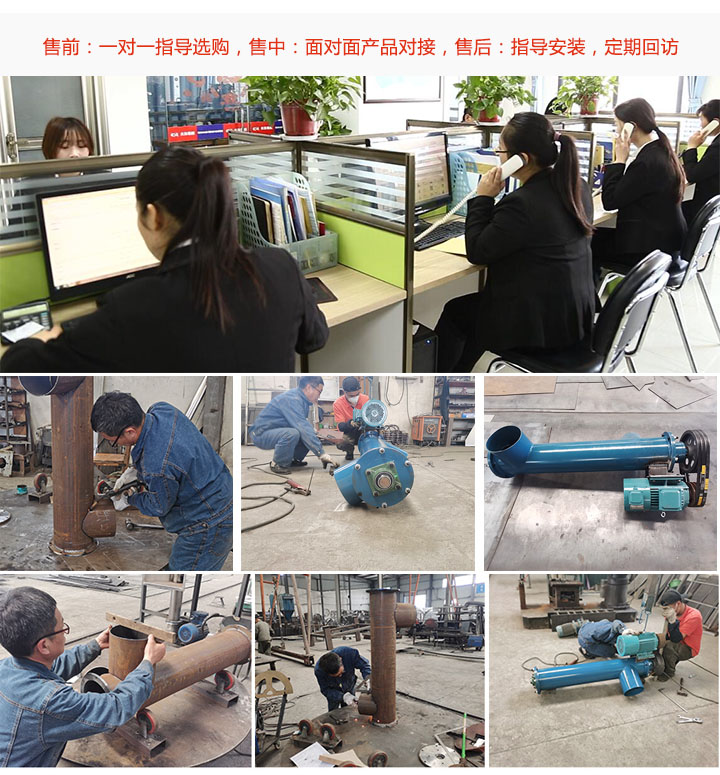 大漢垂直立式螺旋輸送機廠家采用線上,線下雙渠道賣貨,擁有專業(yè)的售前,售中,售后服務(wù)團隊,售前一對一指導(dǎo)選購,售中接用戶來廠參觀,專業(yè)技術(shù)人員與用戶對接需求;售后專人上門講解設(shè)備使用,指導(dǎo)安裝,定期回訪,售后記錄跟蹤。