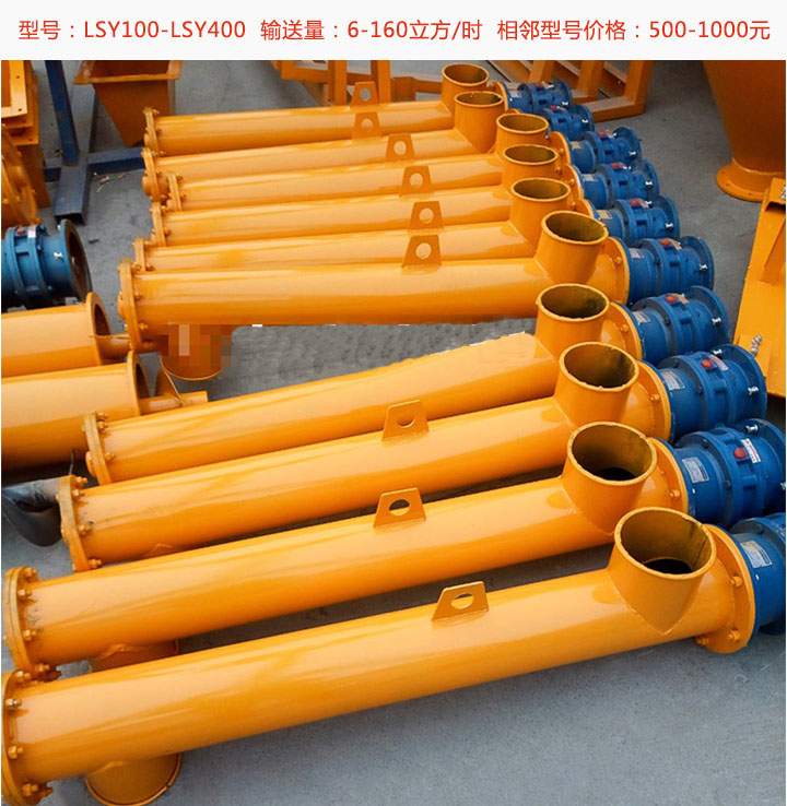 水泥螺旋輸送機常用型號有LSY100,LSY120,LSY140,LSY160,LSY200,LSY250,LSY300,LSY350,LSY400等9種對應的,輸送量為6-160立方/小時,可根據(jù)需要的輸送量選擇對應的型號,型號不同對應的價格也不同。