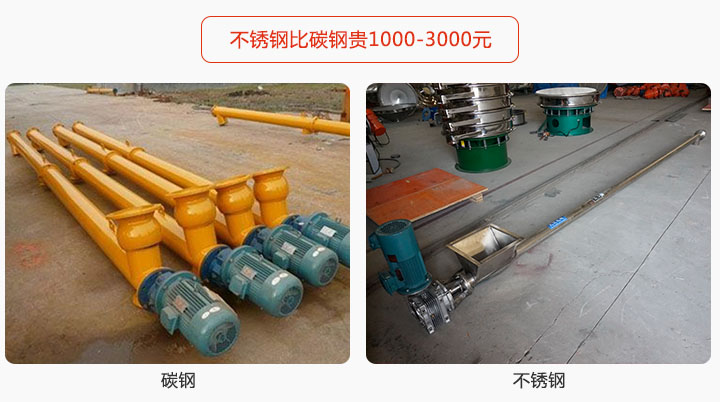 水泥螺旋輸送機有碳鋼和不銹鋼材質(zhì),碳鋼材質(zhì)硬度強,耐磨性強,不銹鋼價格偏貴,其具有良好耐熱性,耐腐蝕性,不生銹,價格偏差為3000元。