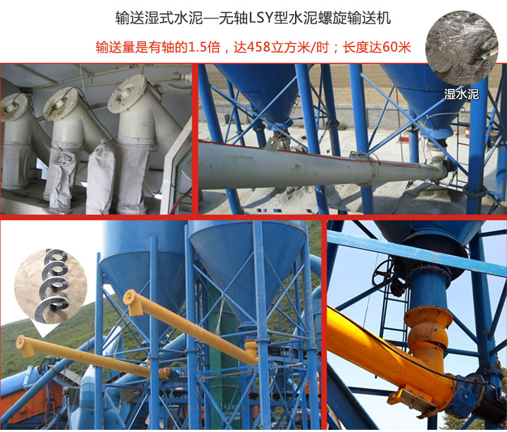 潮濕的水泥含水量偏大,且易粘黏,選擇無軸式水泥螺旋輸送機(jī),采用無螺旋軸,只含螺旋葉片的設(shè)計(jì)理念,可避免輸送中物料堵塞,卡料等現(xiàn)像;而且無軸設(shè)計(jì)其輸送量是有軸的1.5倍,高達(dá)458立方米/時(shí);長度達(dá)60米,可多級(jí)串聯(lián),遠(yuǎn)距離輸送物料。