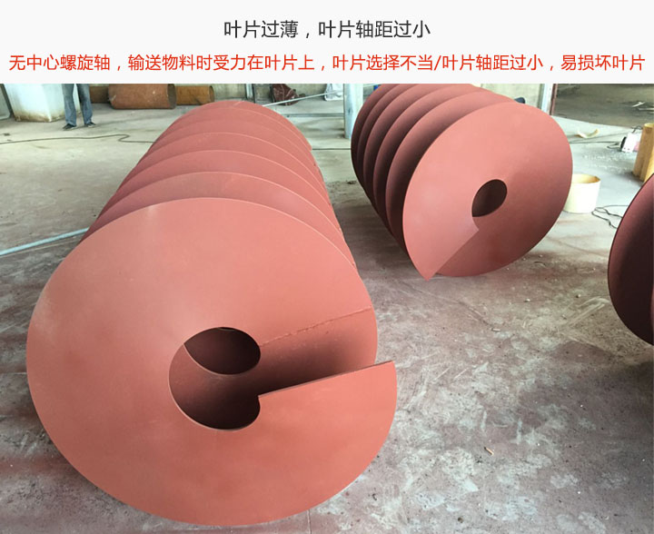 葉片過薄:無軸螺旋輸送機(jī)沒有中間軸,輸送物料時,受力點都在螺旋葉片上,葉片的厚度會影響機(jī)器的試機(jī)使用情況,因此要根據(jù)使用物料選擇對應(yīng)厚度的螺旋葉片