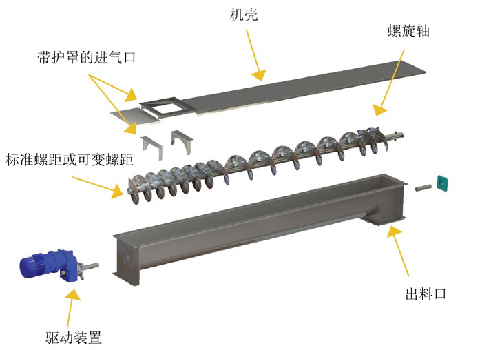 螺旋輸送機按安裝方式可分為水平螺旋輸送機、傾斜螺旋輸送機和垂直螺旋輸送機三種。