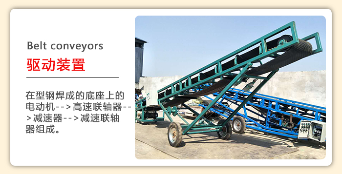 1.驅(qū)動部分:系由裝置在型鋼焊成的底座上的電動機(jī)-->高速聯(lián)軸器-->減速器-->減速聯(lián)軸器組成。根據(jù)布置要求:驅(qū)動裝置設(shè)有左裝和右裝兩種,另外本公司配有功率1.5KW到13KW,速度0.80、1.0、1.25的油冷式電動滾筒。