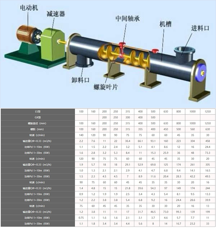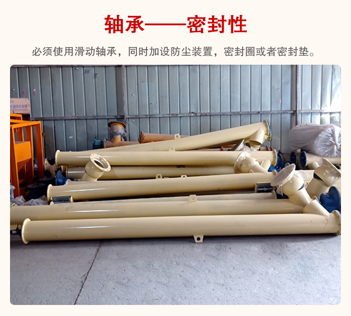 管型螺旋輸送機(jī)必須使用滑動(dòng)軸承,同時(shí)加設(shè)防塵裝置,密封圈或者密封墊,這樣不會(huì)導(dǎo)致