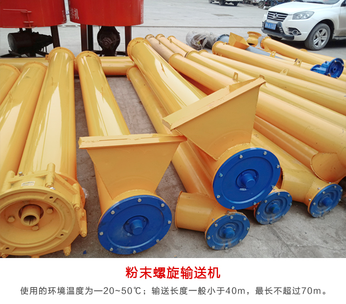 2,螺旋輸送機(jī)使用的環(huán)境溫度為—20~50℃;輸送機(jī)的傾角β≤20°;輸送長(zhǎng)度一般小于40m,最長(zhǎng)不超過(guò)70m。