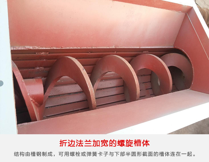 煤粉螺旋輸送機(jī)這種形式的槽體由加工好的夾套連續(xù)地焊接在普通結(jié)構(gòu)的槽體上,其上焊有換熱介質(zhì)的進(jìn)出口管。這種槽體廣泛用于加熱、冷卻成干燥物料。夾套中的隔板使循環(huán)水較好地分配面強(qiáng)化熱交換效果。