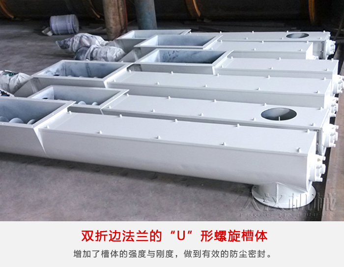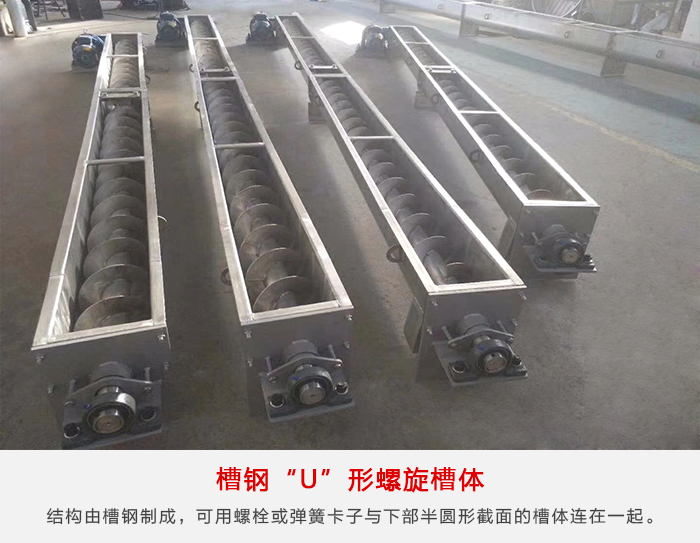 槽鋼“U”形螺旋槽體適用于輸送機(jī)支承間距要求長的場合。槽體的上邊由結(jié)構(gòu)槽鋼制成,可用螺栓或彈簧卡子與下部半圓形截面的槽體連在一起。