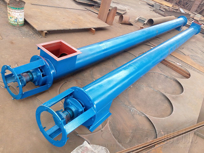 水平管式螺旋給料機適合多點裝料與卸料,輸送過程中可同時完成混合、攪拌或冷卻功能。對超載敏感,易堵塞;對物料有破碎損耗,適用于水平或微傾斜(20º以下)連續(xù)均勻輸送松散物料,工作環(huán)境溫度為-20—+40℃,輸送物料溫度為-20—+80℃。其轉(zhuǎn)速相對于垂直輸送機要低,主要用于水平或小傾角輸送物料,輸送距離一般不大于70米。