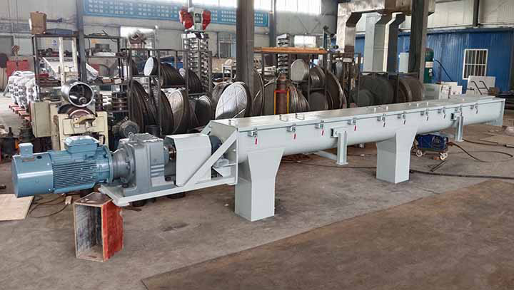 無(wú)軸管式螺旋輸送機(jī)是利用旋轉(zhuǎn)的螺旋將被輸送的物料沿固定的機(jī)殼內(nèi)推移而進(jìn)行輸送工作,頭部及尾部軸承移至殼體外,GX型管式螺旋輸送機(jī)吊軸承采用滑動(dòng)軸承,設(shè)有防塵密封裝置,GX型管式螺旋輸送機(jī)軸瓦一般采用粉末冶金,輸送水泥采用毛氈軸瓦,吊軸和螺旋軸采用滑塊連接。