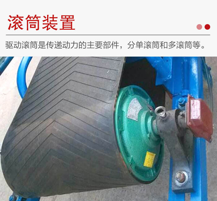 皮帶輸送機(jī)滾筒裝置分為驅(qū)動(dòng)滾筒和改向滾筒。驅(qū)動(dòng)滾筒是傳遞動(dòng)力的主要部件,分單滾筒(膠帶對滾筒的包角為210°至230°)、雙滾筒(包角達(dá)350°)和多滾筒(用于大功率)等。