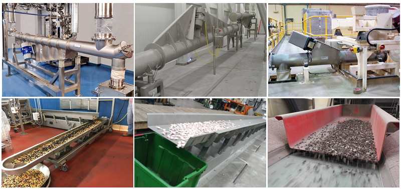 載體:可選擇U型槽和管狀的,也可以制成敞開式或密封式,以滿足不同的工藝流程。料槽的進料和出料也可根據(jù)需要制成單點/多點進料,單點/多點出料等多種型式。